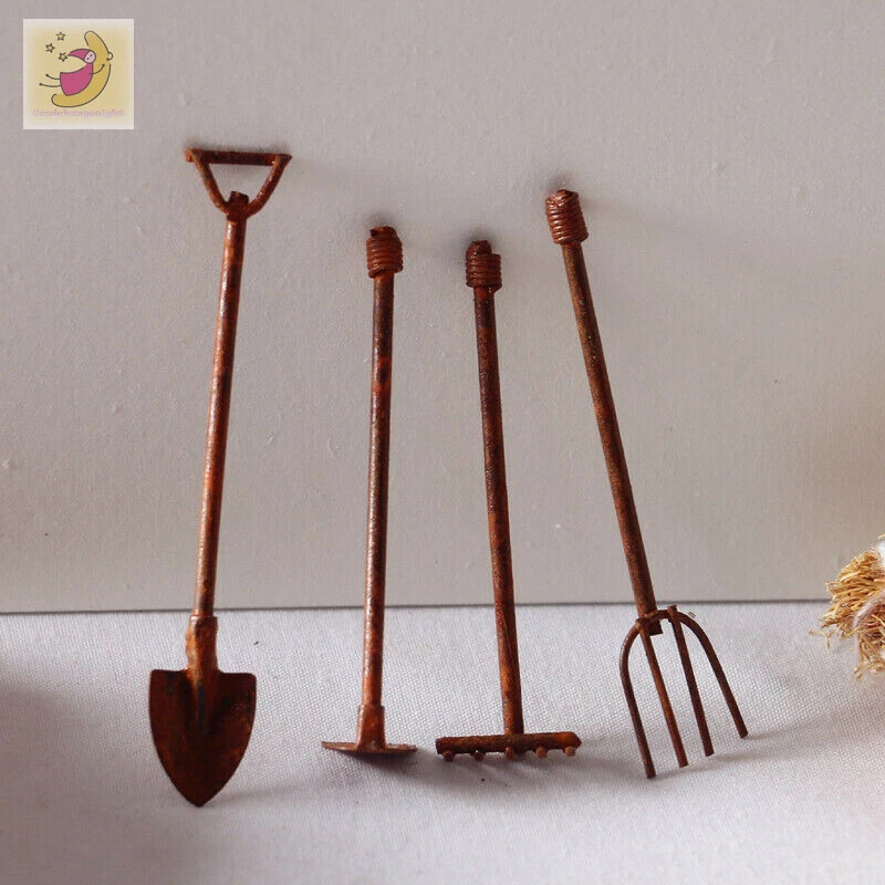 4pcs Dollhouse 1 12 Miniature Farm Accessorie Shovel Hoe Pitchfork Fairy Garden Ebay